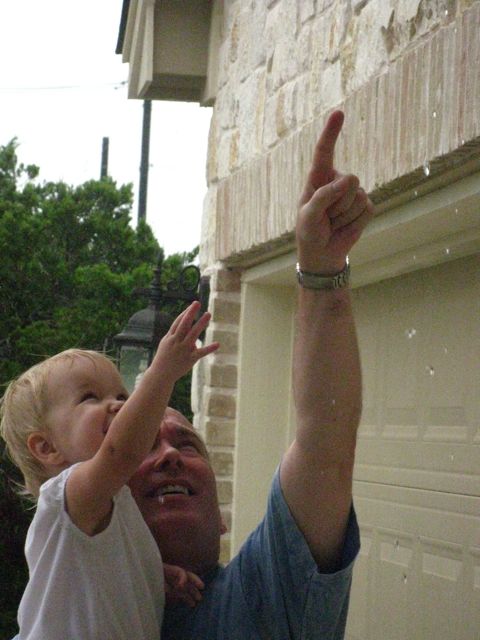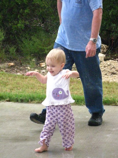 Just got home from San Antonio. We drove down earlier this afternoon to attend Emma’s 8th birthday party. Brady took less than an hour nap, didn’t sleep in the car on the way down, and was not in the best of moods. It could have been worse and she actually did pretty well but I imagine it would have gone even better if she had rested prior. It was supposed to be a pool party but it started raining on our way down and was coming down pretty heavily in places along the way and still steadily by the time we arrived so it ended up being inside – good thing they have a big house. Brady enjoyed eating cake, strawberries, and pizza, playing with balloons, pointing between a pumpkin (her new obsession) and a pineapple, climbing up the stairs, and fuzzy bean bags. We ended up leaving after Emma opened her presents since Brady was getting restless and entering the crazy tired category. We made it home around 9:30 and now are just relaxing and drinking a beer before we call it a night.