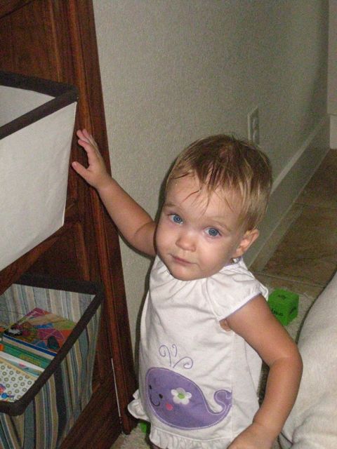 Brady’s sleep schedule is still really out of whack.  It’s been a week now.  Saturday morning she woke up the first time screaming around 12:30 and would not stop.  I went up about 30 minutes later when it was apparent she wouldn’t self soothe and brought her to bed with us.  I kept her in bed for 30 minutes and she still wasn’t going to sleep.  She wanted to say hi and roll around and play.  I put her back to bed on her own for an hour and she fell back asleep and woke up screaming an hour later.  This time I went up there with my pillow and laid on her floor with her.  She still wanted to talk and kept saying “sa” (we think that’s her of saying what’s that because she asks over and over until we answer and then will move on) or “li” (light on her monitor) and would randomly give me kisses.  I laid up there for an hour with her before going back to bed.  She fell asleep for a little while longer (I can’t even remember what time at this point) and screamed again but went back to sleep and slept til almost 9.  Ugh.  Then she took a nap from 1-4 and didn’t go back to bed until after 8.  She *did* sleep in until 8:30 today so that was nice.  I can deal with a little later bedtime for her if it means she wakes up a little later in the morning.  But the waking up in the middle of the night completely awake and ready to go has to stop!  Or more like, I really hope it will.  She’s too old for this and has been sleeping through the night for way too long to just start this up again.  At the risk of getting bitten, I haven’t checked to see if her teeth are through or more are coming through but need to try and remember to give her some sort of justification for this crazy schedule.